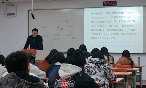 为进一步推动我校“课程思政”教育教学改革,促进思政教育与专业教育的有效融合,充分发挥我校教授的示范引领带动作用,形成“课程思政”建设全面推进的良好氛围,我院积极响应学校组织2020年教授观摩课活动的号召,11月27日上午,由我院陆和健教授讲授的课程《社会主义改造》,面向校内各学院青年教师开放,以供观摩。