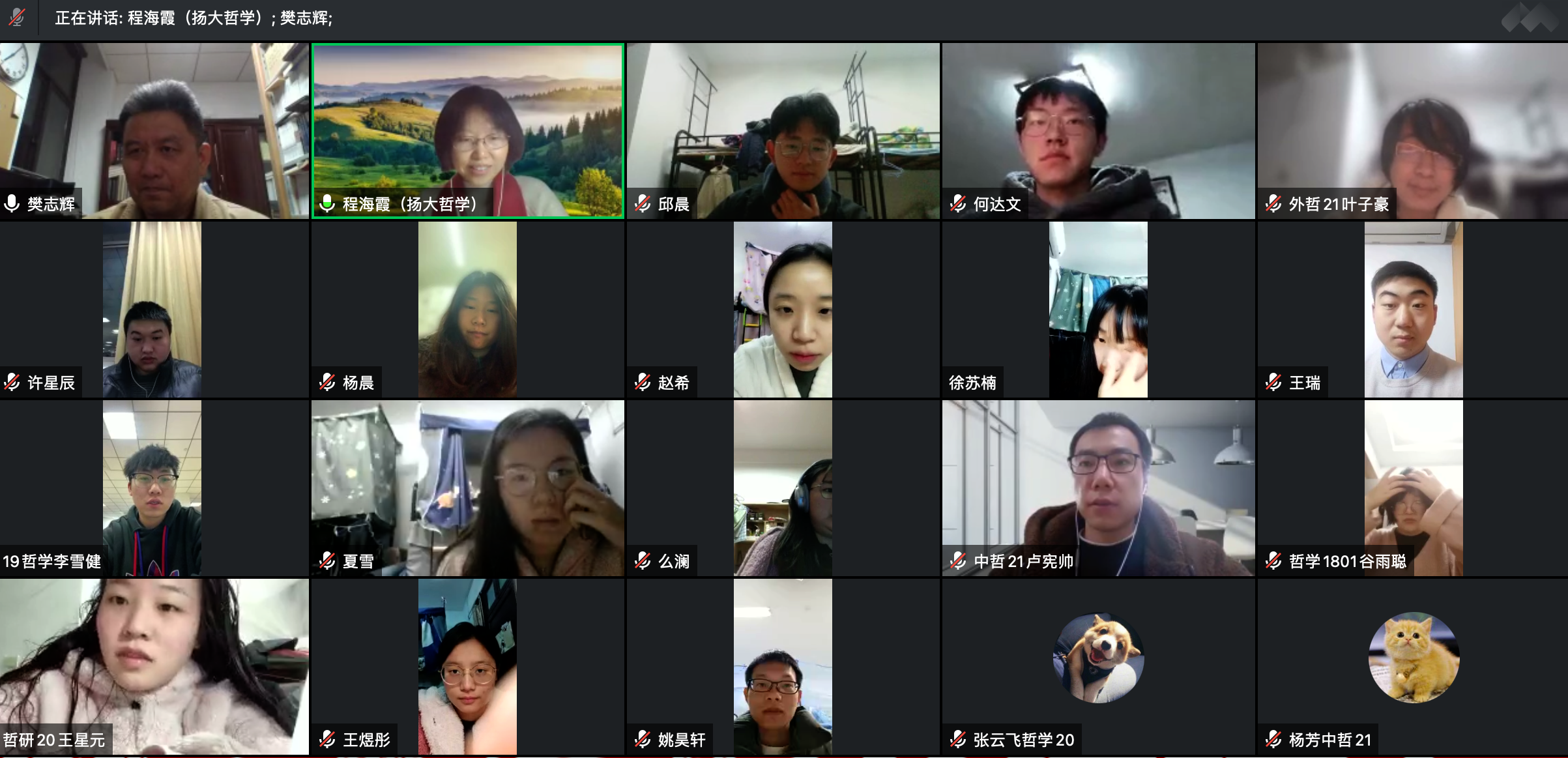 12月2日,我院举办2021年扬州大学本科教学节系列活动——“中国当代哲学教育的三个向度”专题讲座,特邀中国现代哲学学会理事、中国宗教学学会理事、首都师范大学客座教授、上海师范大学哲学与政法学院副院长樊志辉教授主讲。我院哲学专业师生及其他哲学爱好者通过腾讯会议参会,副院长程海霞副教授主持会议。