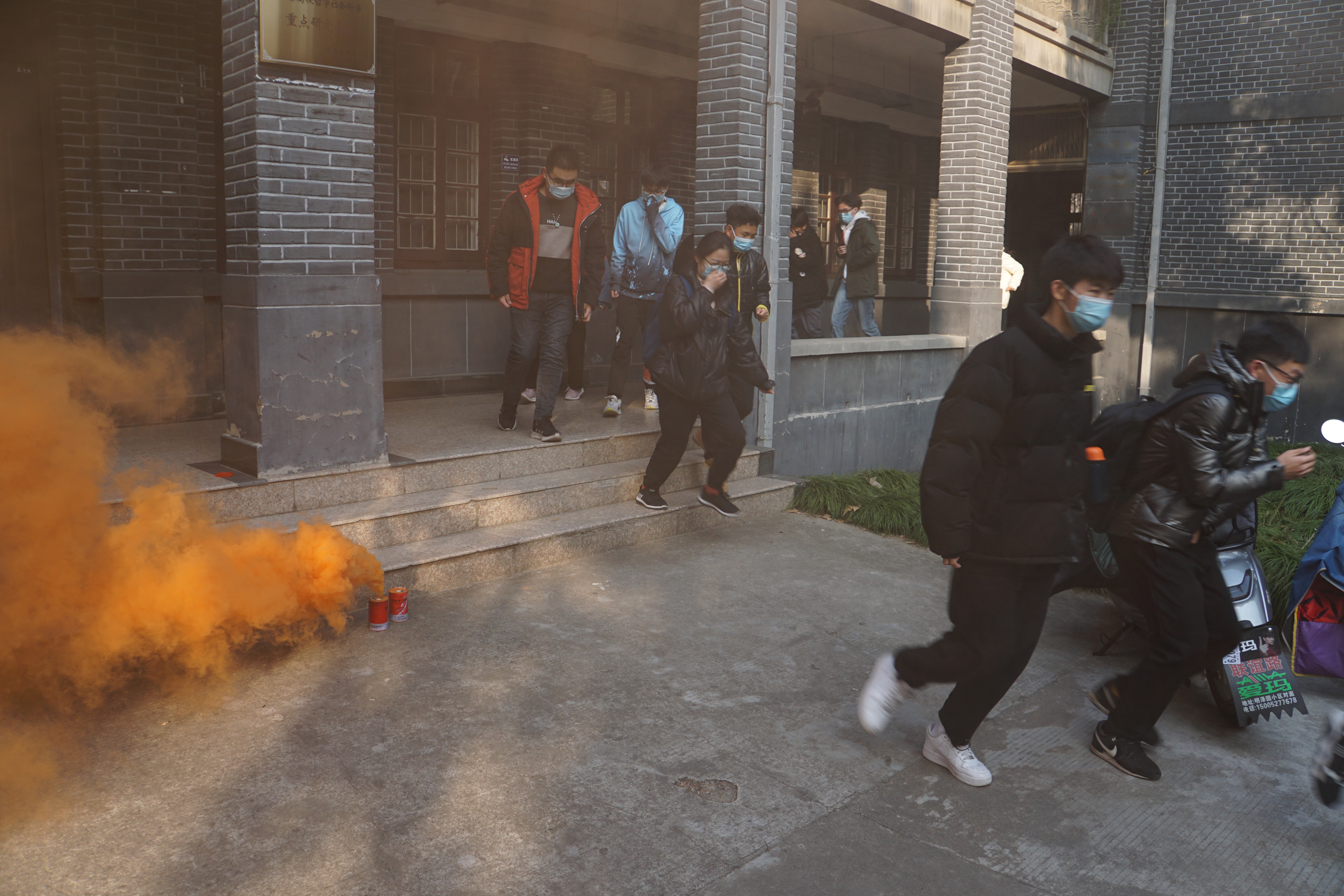 杭天龙科长结合视频案例,就火灾预防和逃生知识进行了生动有趣的专业讲解。赵宇老师通过现场演示,详细讲解了灭火器的操作方式。专题讲座后,参训师生还进行了火灾疏散演习。
