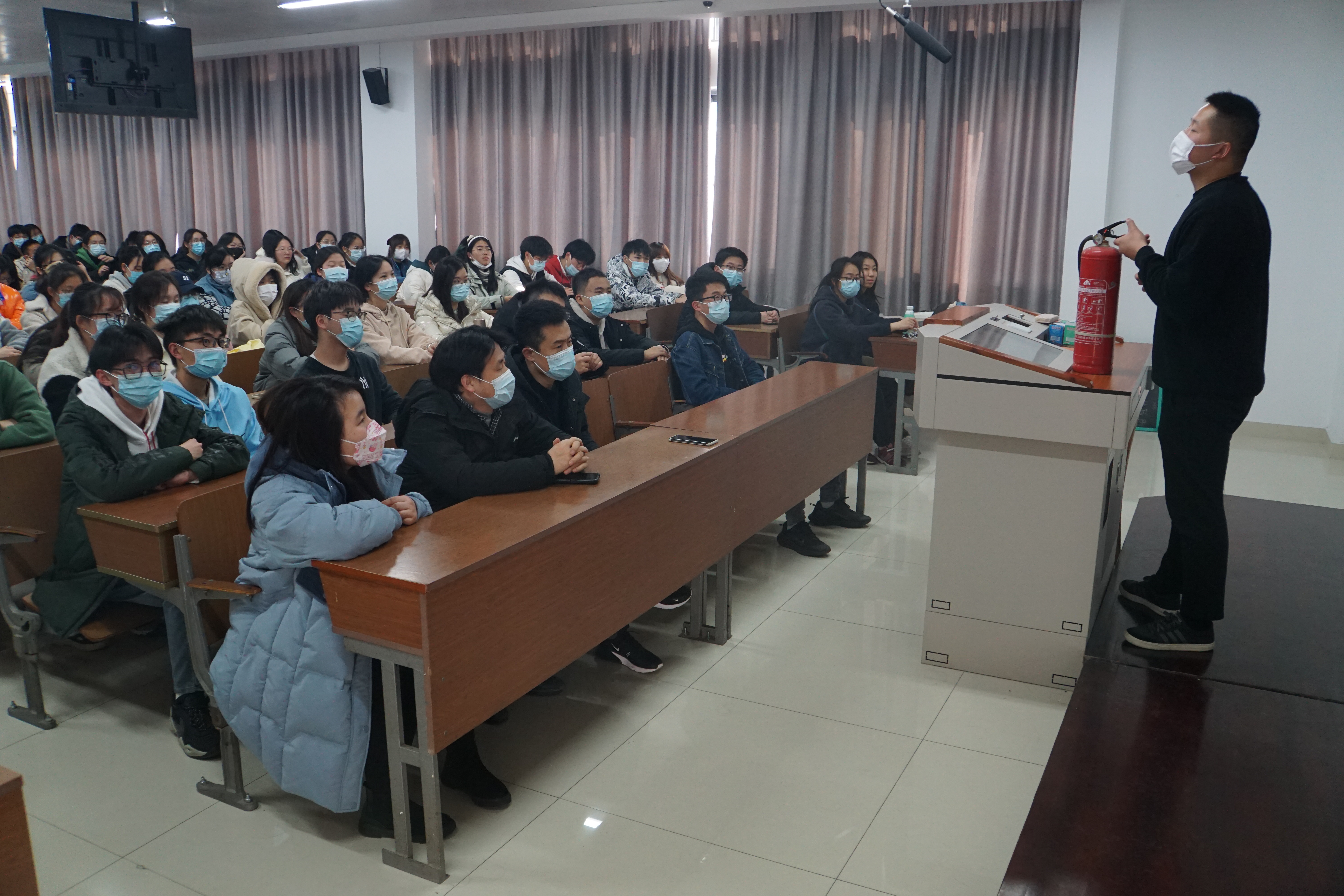 为进一步加强实验室安全管理,12月22日下午,学院邀请校保卫处消防与安全生产管理科杭天龙科长和赵宇老师来院做实验室安全教育专题讲座,并组织消防安全演练活动。