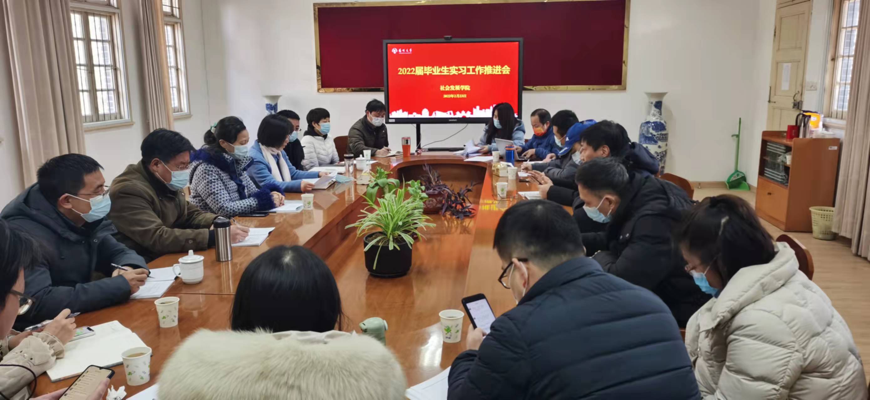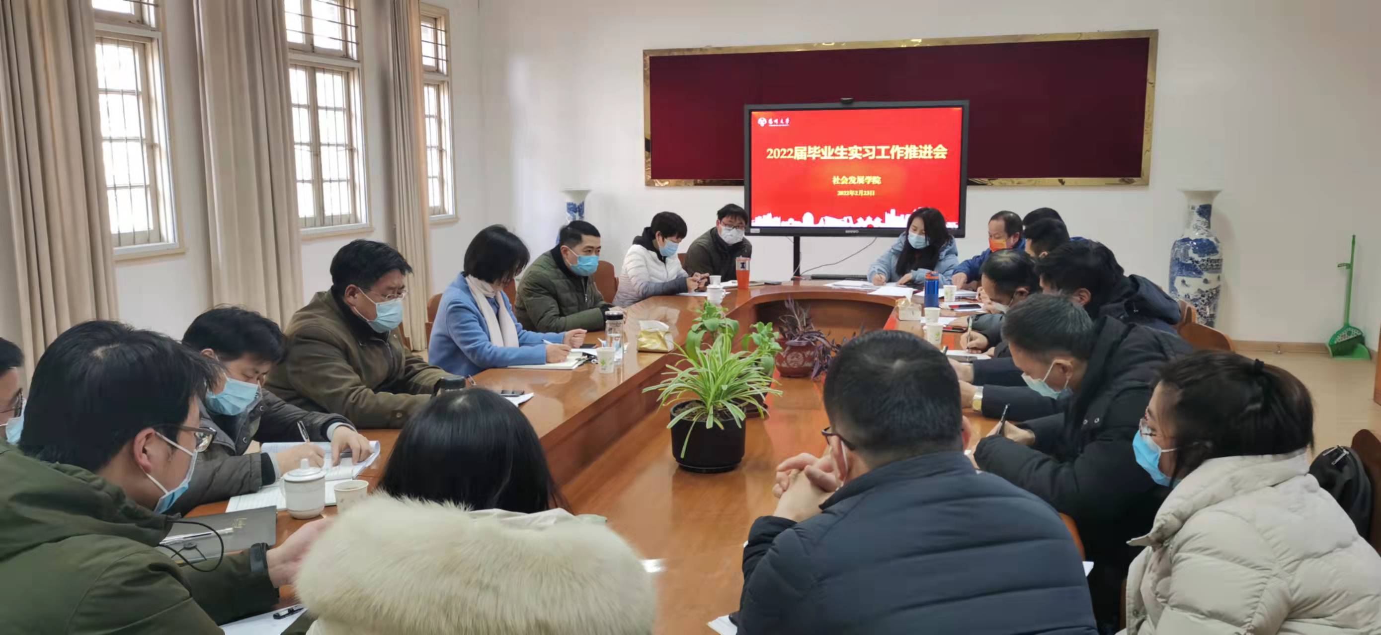 2月23日下午,学院在二楼会议室举行2022届毕业生实习工作推进会,程海霞副院长主持会议。院领导、各系主任、教研室主任、实习负责人,实习指导教师,教务处副处长俞福丽及文学院汉语言文学专业主任张立兵应邀出席会议。