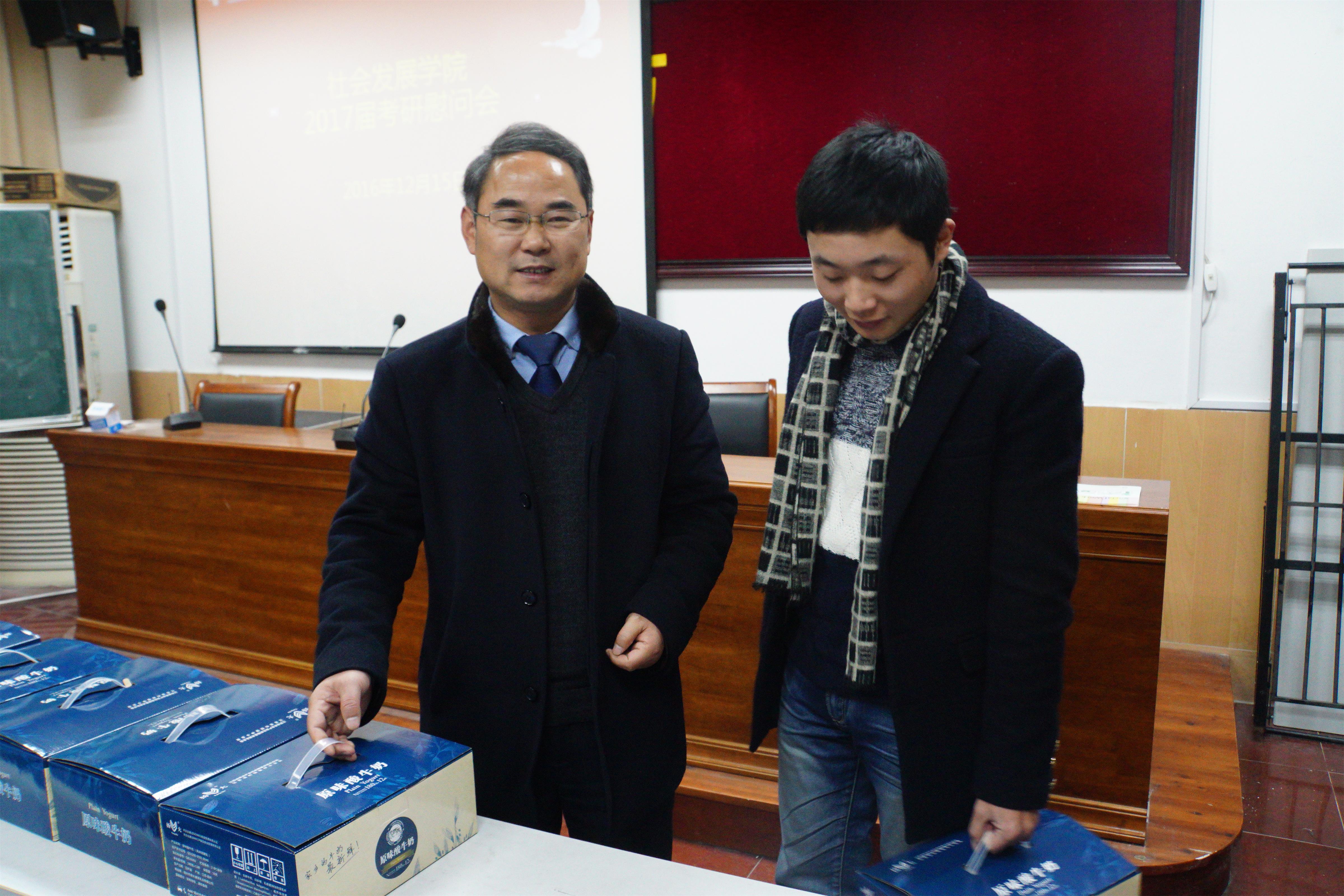 会议最后,居书记为每一位考研学生发放了一箱酸奶,以此鼓励学生们认真复习。此外,学院还特意开设了有空调开放的自习教室,让考研的学生能够更加投入到学习之中。“考研很辛苦,我们学院方面会尽可能帮助大家,真诚地祝愿大家马到成功!”居书记亲切地说到。此次考研慰问会的举办,体现了社会发展学院领导对考研的重视与支持,坚定了同学们的考研信念,增加了同学们的考研经验。