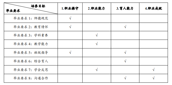 三、“培养目标-毕业要求”支撑矩阵