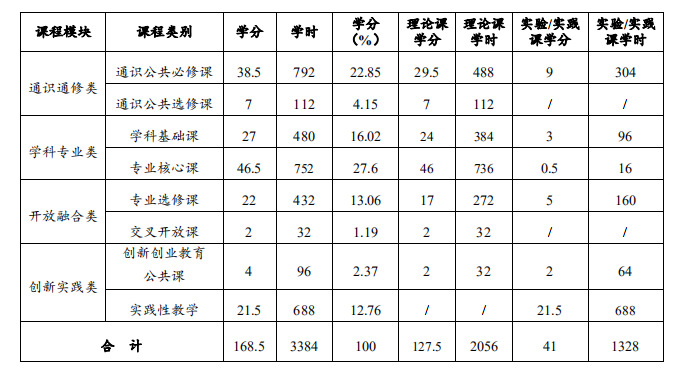 八、课程构成及学分学时分配