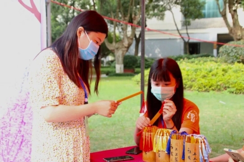 在还未见面时,学院老师就将心中美好的祝福写在一张张粉红方纸上,藏进精美的锦囊里,以锦囊为信物,送到学生的身边。258位学生打开锦囊后,确认过眼神,以后就是社发人了。