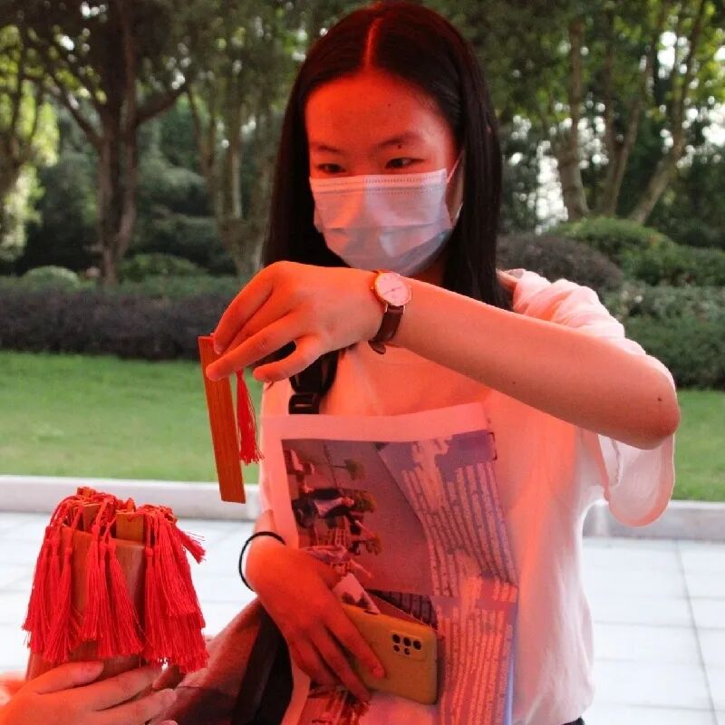 社会发展学院为每一个专业设置了一个签筒,把学院历史、哲学、档案和社会工作四大专业的名人名言作为签诗签语镌刻在“上上签”之上。新生可以到对应专业的签筒中抽出属于自己的人生“上上签”。这代表着社发学院对新生的美好祝福,希望新生能够在未来的大学四年中身体健康、学业顺遂、生活多姿多彩。而签上所刻名人名言与座右铭,也希望能够激励他们在自己所学的专业里努力拼搏、发光发热,从此人生平步青云。