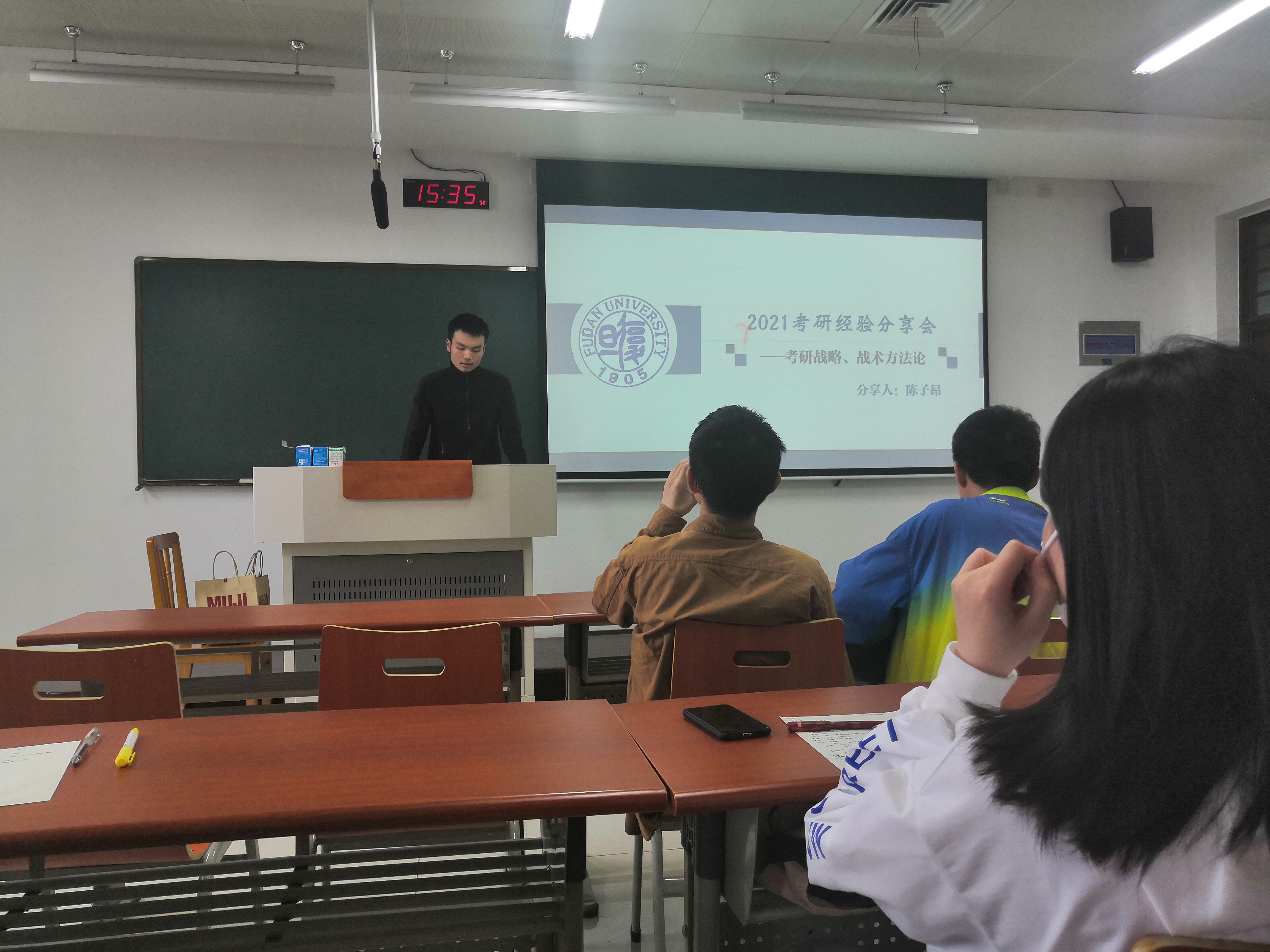 王靖同学主要从考研的共性问题为大家进行了讲解,强调大家要在了解共性的基础上,把握好自己的个性。对于考研专业选择要根据自己兴趣;城市选择要基于自己的个人偏好、未来发展,另外还要特别注意城市选择对于考研调剂的影响;学校要在评估心仪专业排名的基础上,以其最终录取人数为衡量条件。关于备考问题,一定要给自己创造一个适合考研的学习环境。王靖同学尤其强调了要根据考研的时间分配来调整自己的作息,帮助自己提前适应。关于专业课的学习,王靖同学强调可以通过纵向梳理章节框架、横向梳理每个知识点的演变过程的方式,在理解的基础上反复背诵记忆。