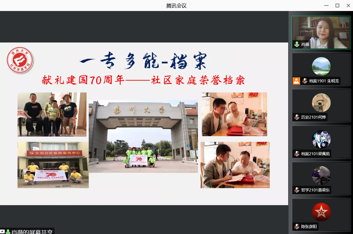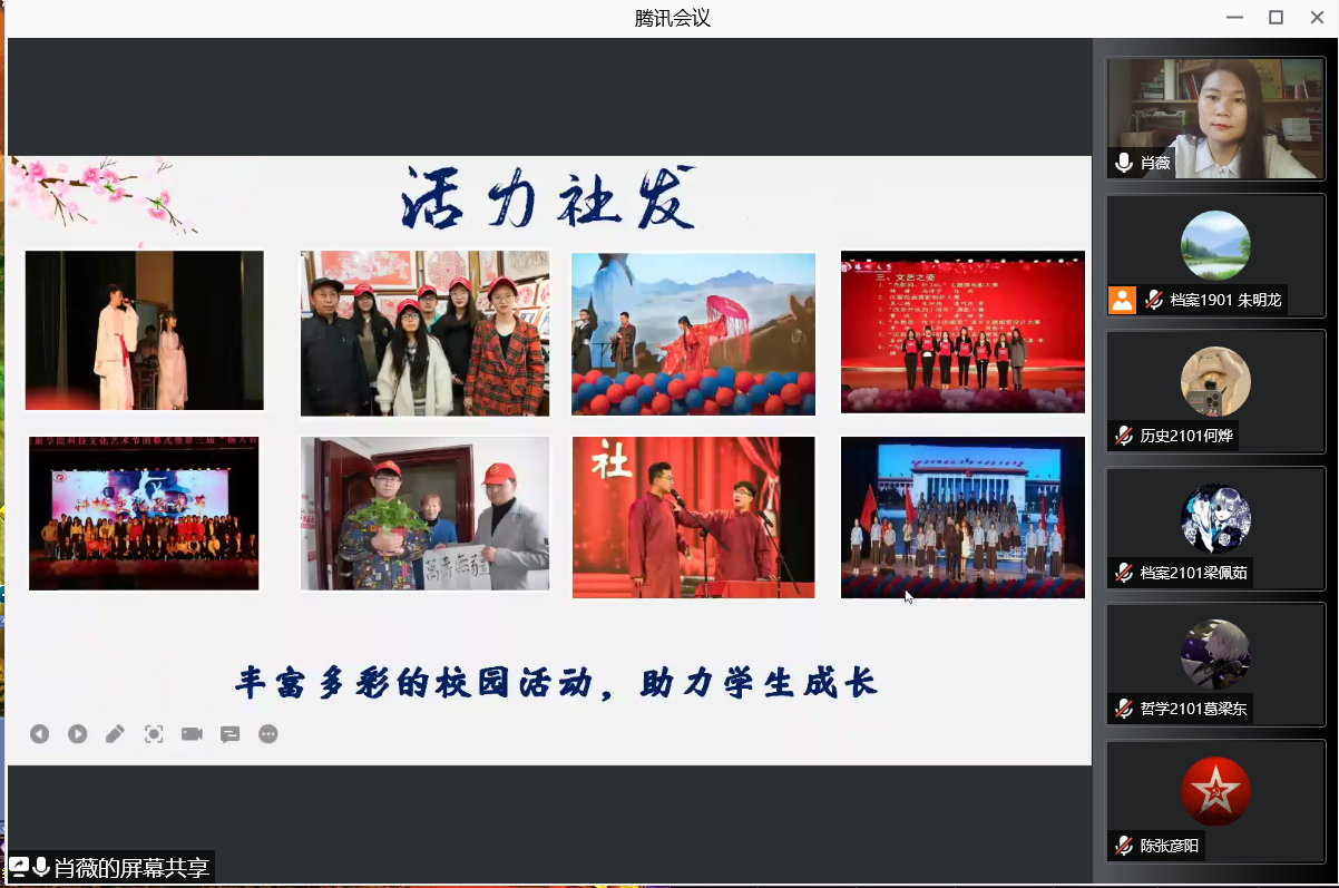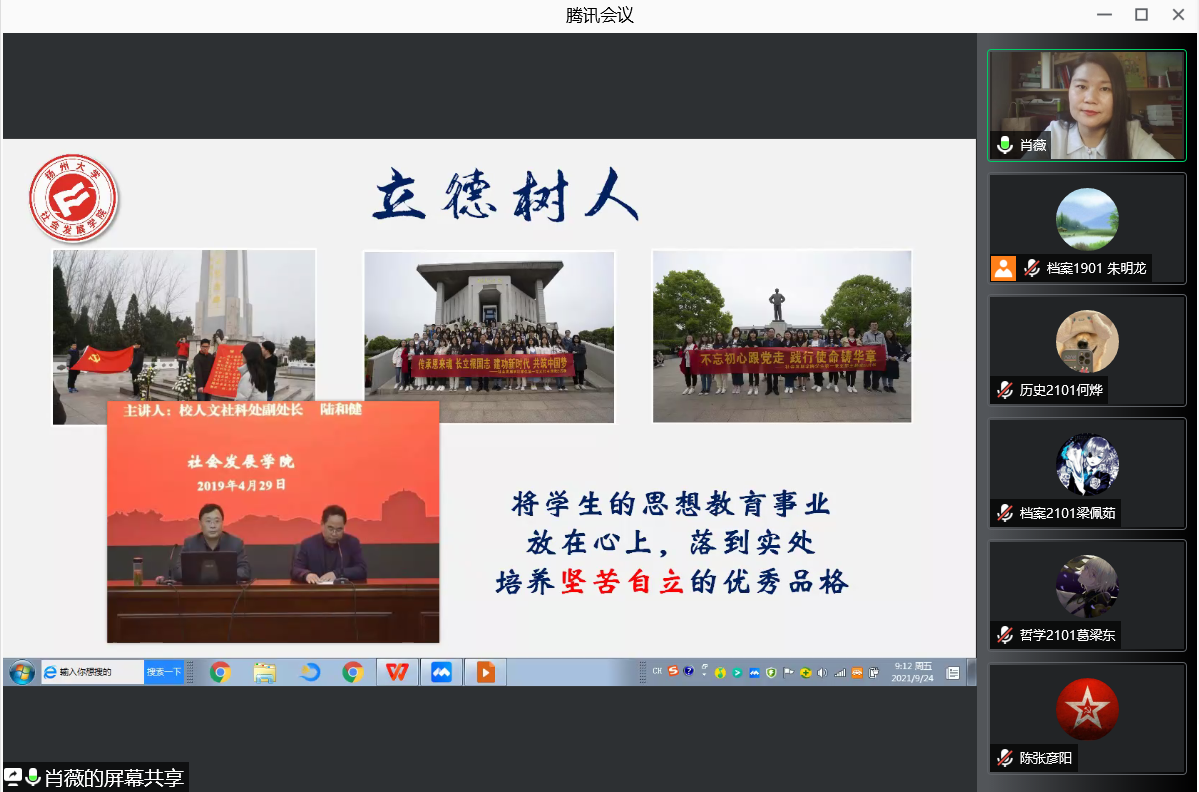 随后,肖老师表示学院坚持以学生中心的育人理念,按照“以生为本、立德树人、活力社发、一专多能”的培养目标培养一代代优秀的社发学子。口述史历史项目是我院历史班的最亮眼的名片,用采访文稿记录春秋,用视频时长丈量历史;献礼建国70周年——社区家庭荣誉档案展示了档案班的风采,用档案来保存共同的记忆;“童”舟共济乡村困境儿童志愿服务项目荣获江苏省志愿服务金奖项目,是社会工作班级的光辉荣耀;广陵琴韵哲学思考与历史传承,哲学班在古扬州的遗风中思考哲理。肖老师向新生们展示着学院风采,一块块奖牌和一张张奖状象征着我院辉煌的今天,我院教师和学生们用汗水和努力铸就了独特的活力社发。