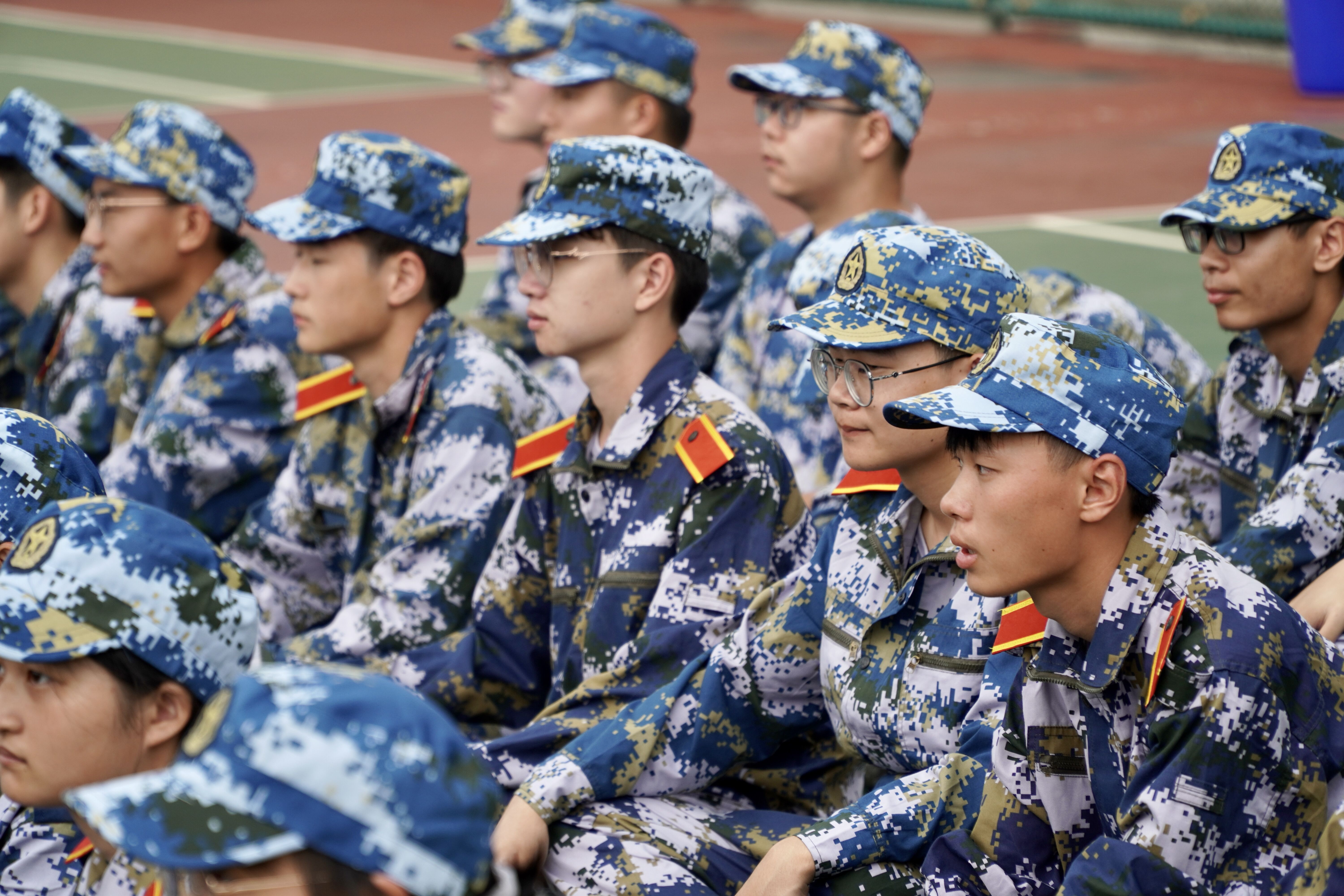 铿锵有力的口号,硬朗坚定的目光,身着迷彩服的少年们踏着正步,整齐划一。“稍息,立正!”站军姿时的他们,动作一丝不苟,表情严阵以待,在时间一分一秒的流逝下,简单的动作也需要内心的坚持,这是对他们毅力的考验。站如松,坐如钟,他们背脊挺直,目视前方,将自觉和纪律记在心中,展现出少年的朝气和蓬勃。