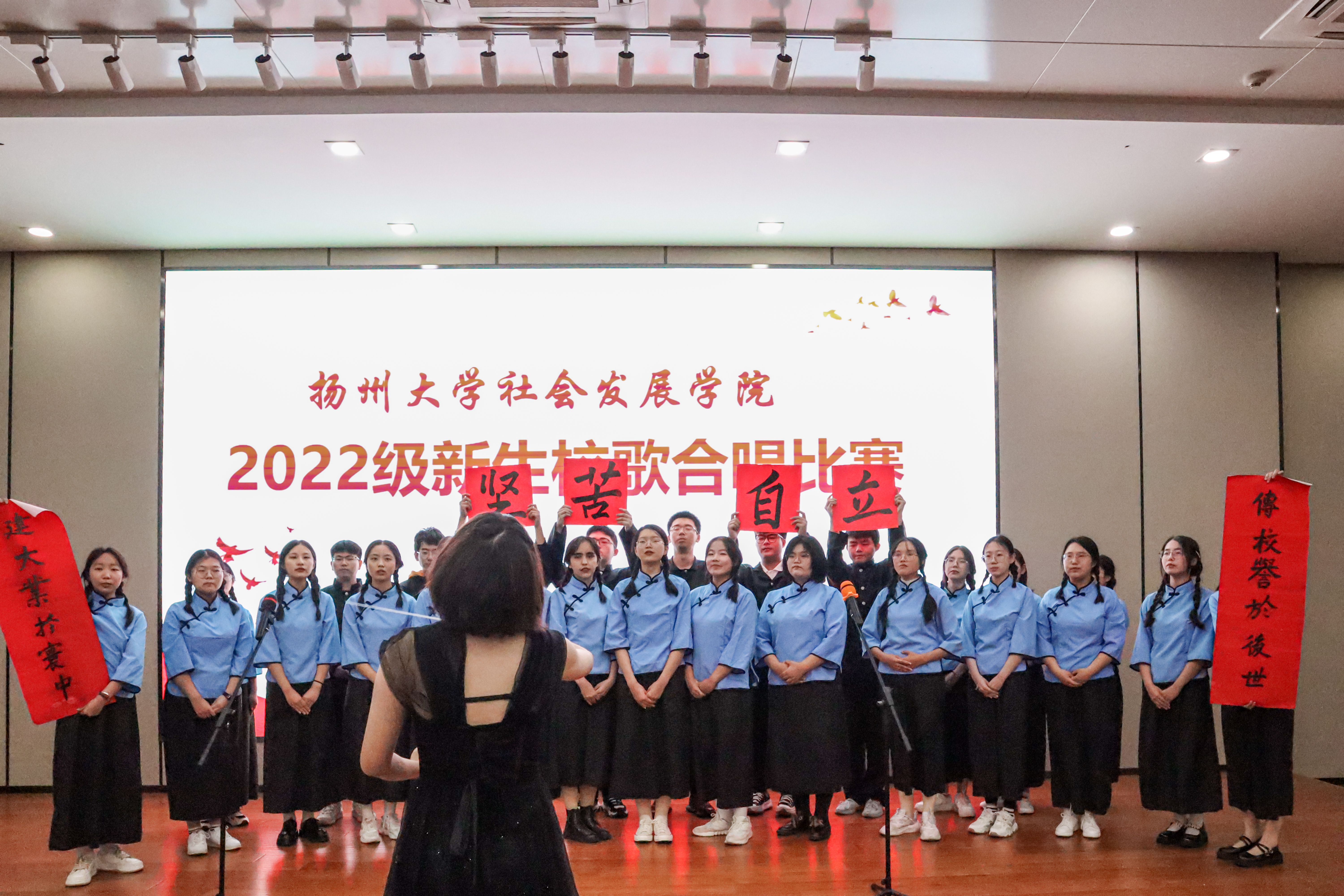 青春在歌声中飞扬,奋发在舞台上彰显,为弘扬坚苦自立的扬大校训,引导学生以奋发进取、健康向上的精神面貌投身新的学习生活,11月4日晚我院举行了扬州大学社会发展学院2022级新生校歌合唱比赛。