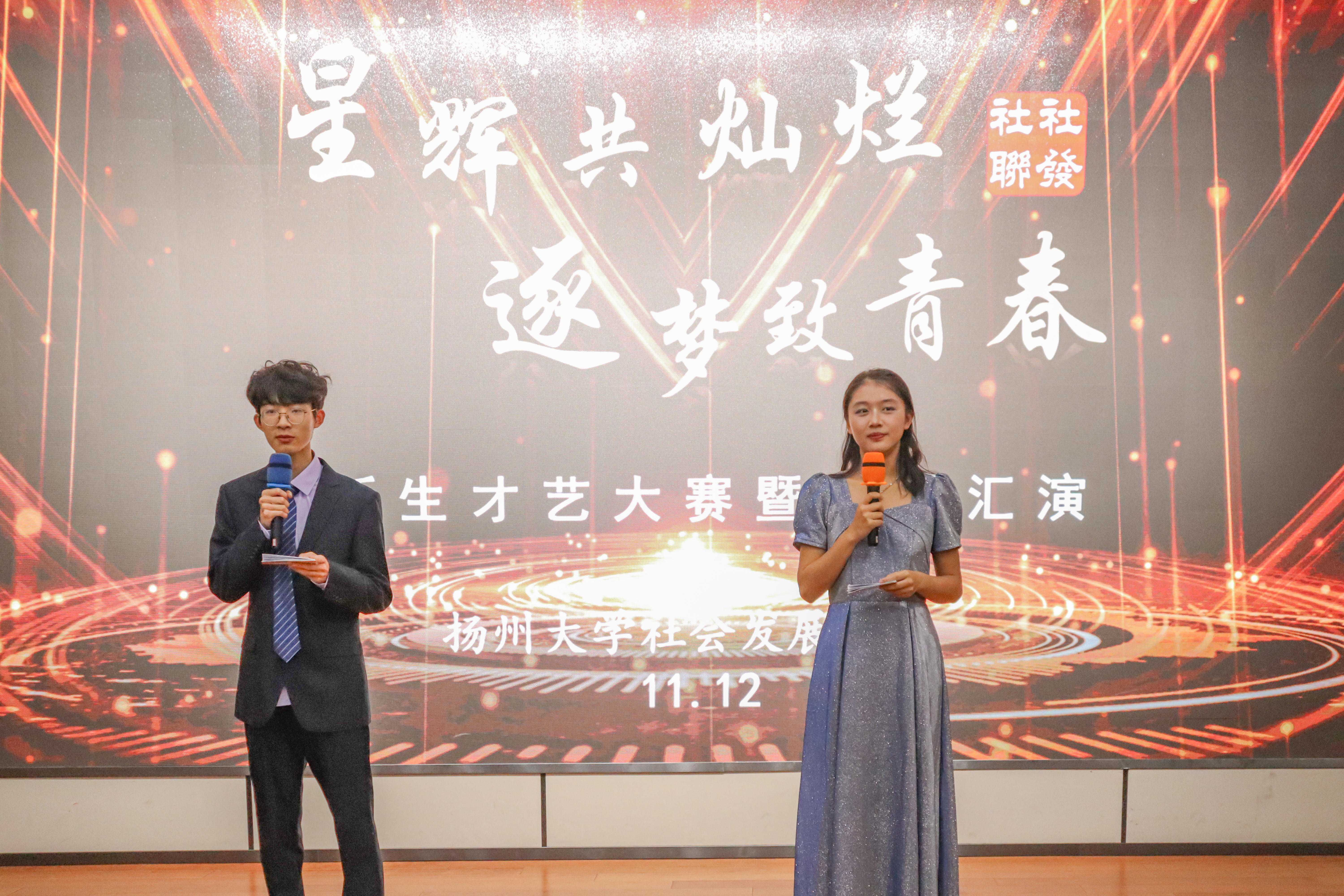 11月12日,扬州大学社会发展学院的新生才艺大赛终于到来,所有22级新生欢聚一堂,我院党委副书记杨方老师、团委书记肖薇老师、全体辅导员和22级各班班主任来到现场,担任此次比赛评委。