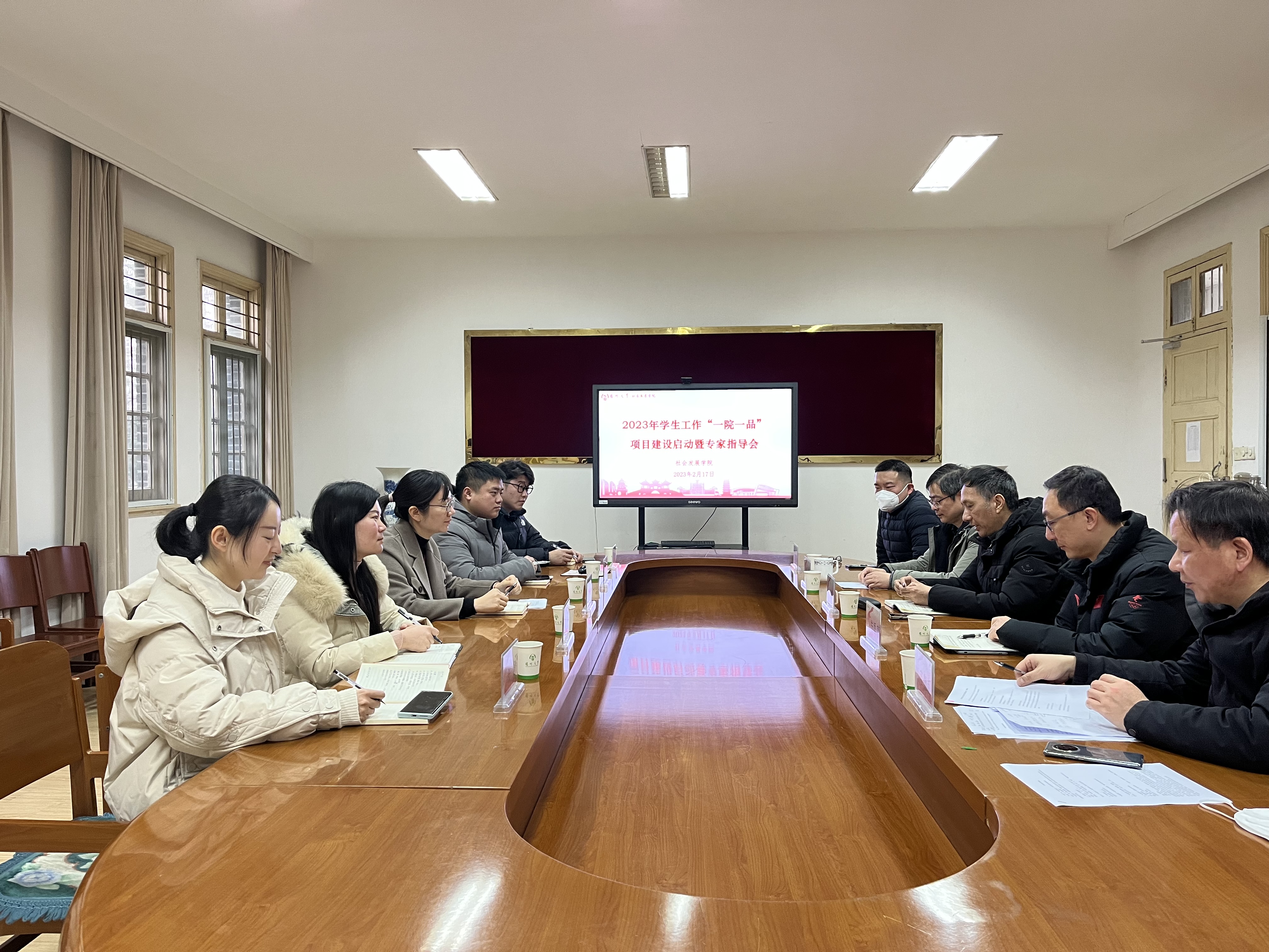 2月17日上午,我院召开2023年学生工作“一院一品”项目建设启动暨专家指导会,院党委副书记杨方主持,全体辅导员参会。我院邀请历史学朱煜教授、朱季康教授、张进副教授、张文涛副教授、丁慧超老师莅临会议,五位专家老师结合我院多年“一院一品”成果,从项目选题、团队组建、项目推进、成果呈现等方面做了全面指导。