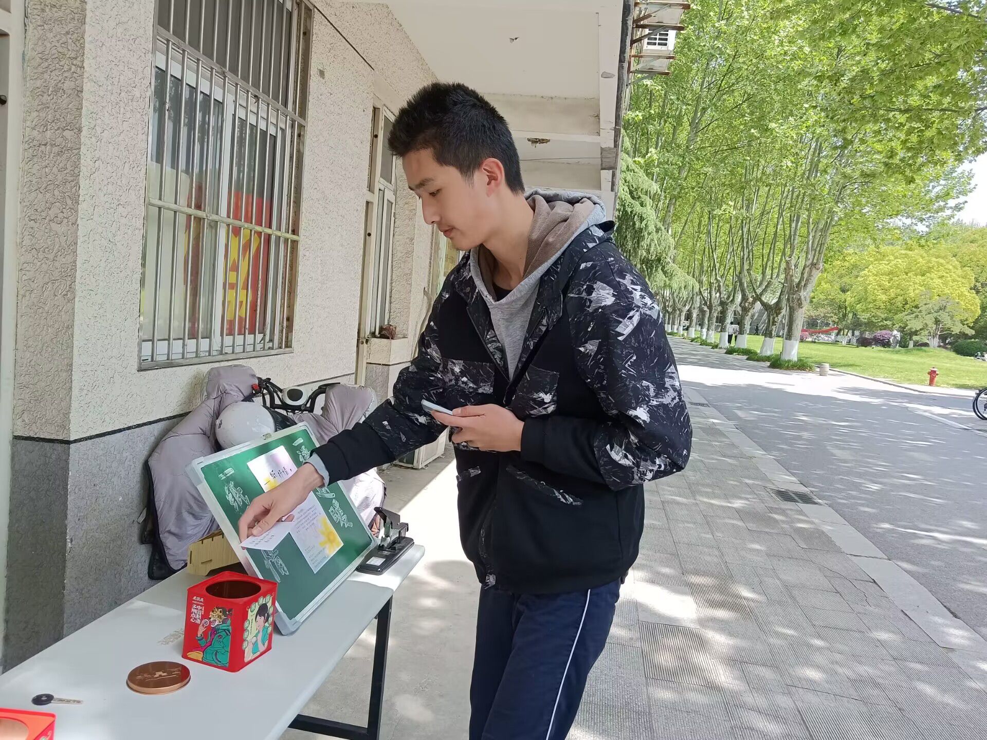 活动中,社发心协工作人员制作卡片并填写温暖快乐的语句,投放于“暖心箱”中。路过的同学可从“暖心箱”中随机抽取一张卡片,选择在卡片背面写下对他人的春日祝福或者值得分享的事情,投入“回收箱”。