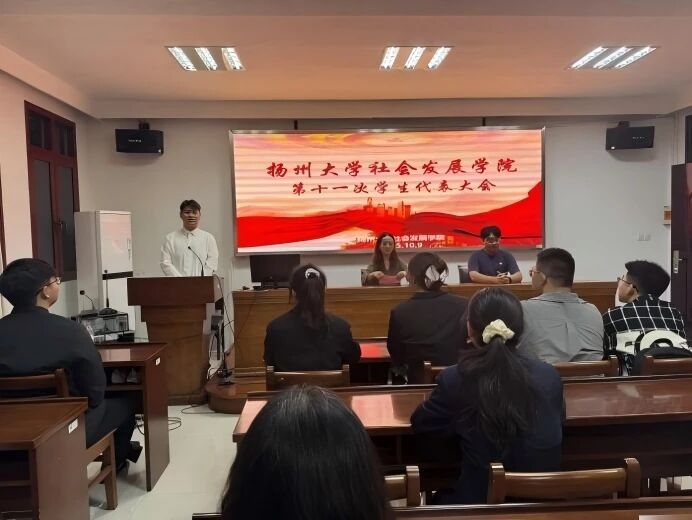 随后大会进入选举环节,全程严格遵循民主、规范原则。刘镒铭首先向全体参会人员宣读《扬州大学第十一次学生代表大会正式代表选举办法》与《扬州大学社会发展学院第十一届学生会主席团成员选举办法》,确保选举规则公开透明。经现场监票、计票人员认真统计与结果公示,最终选举产生7名扬州大学第十一次学生代表大会代表,其中冯熙然当选大会常任代表;此外,在4位候选人中选举产生3名院学生会主席团成员,为学院学生会工作注入新活力。