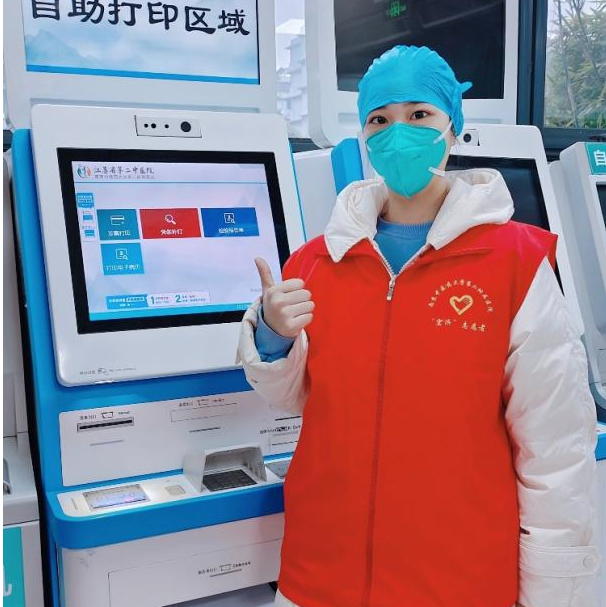 档案2201班的梁萌萌参加江苏省第二中医院寒假志愿服务活动,引导患者使用检验报告自助机与自助打印机、使用医院一卡通自助挂号以及帮助患者租借轮椅等工作。她表示,此次实践中,她看到了医护人员在抗疫一线的坚守,感受到了人们战胜新冠肺炎的乐观,也培养了自身社会责任感和使命感。