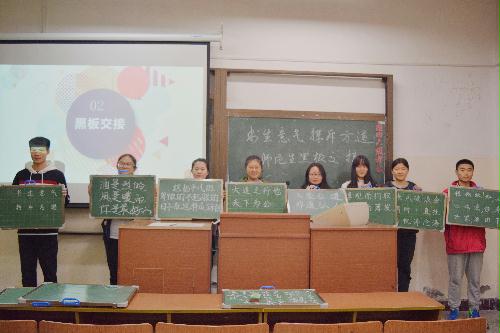 随后,历史1701班的同学们郑重地从教师技能协会的前辈手中接过小黑板。“如果说我以前对于师范生到底要承担些什么还存有疑惑,那么现在我已经真真切切地感受到了我们专业的意义,它代表着一种责任,一种使命。”历史17级学生魏紫薇激动地说道。