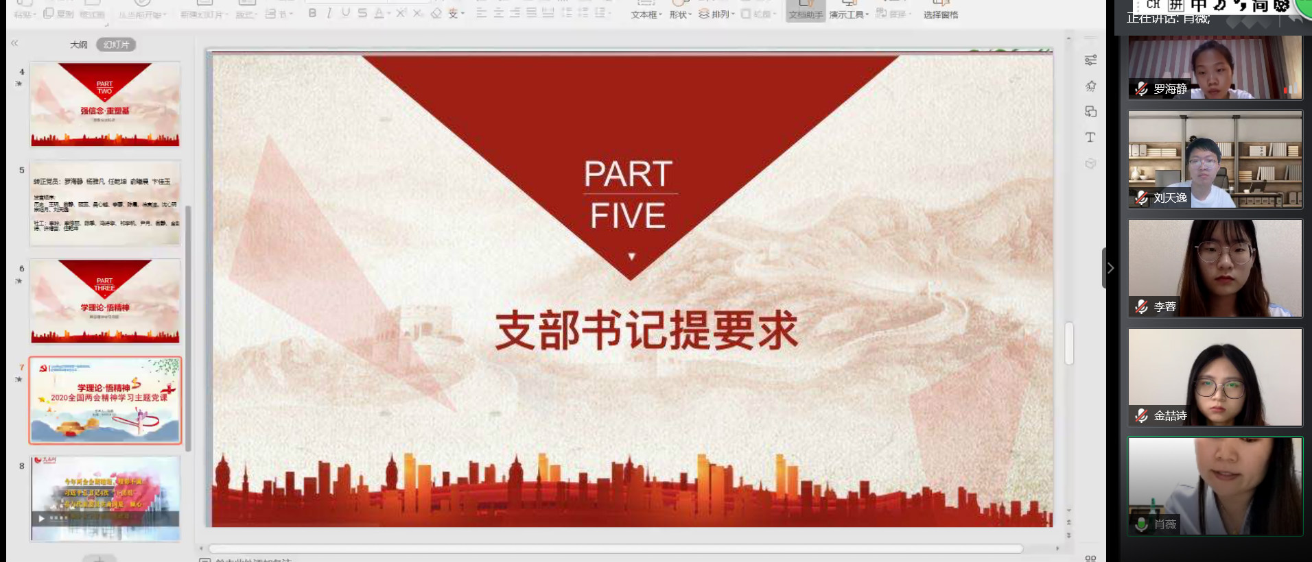 肖薇书记为支部党员上2020年全国两会精神学习主题党课