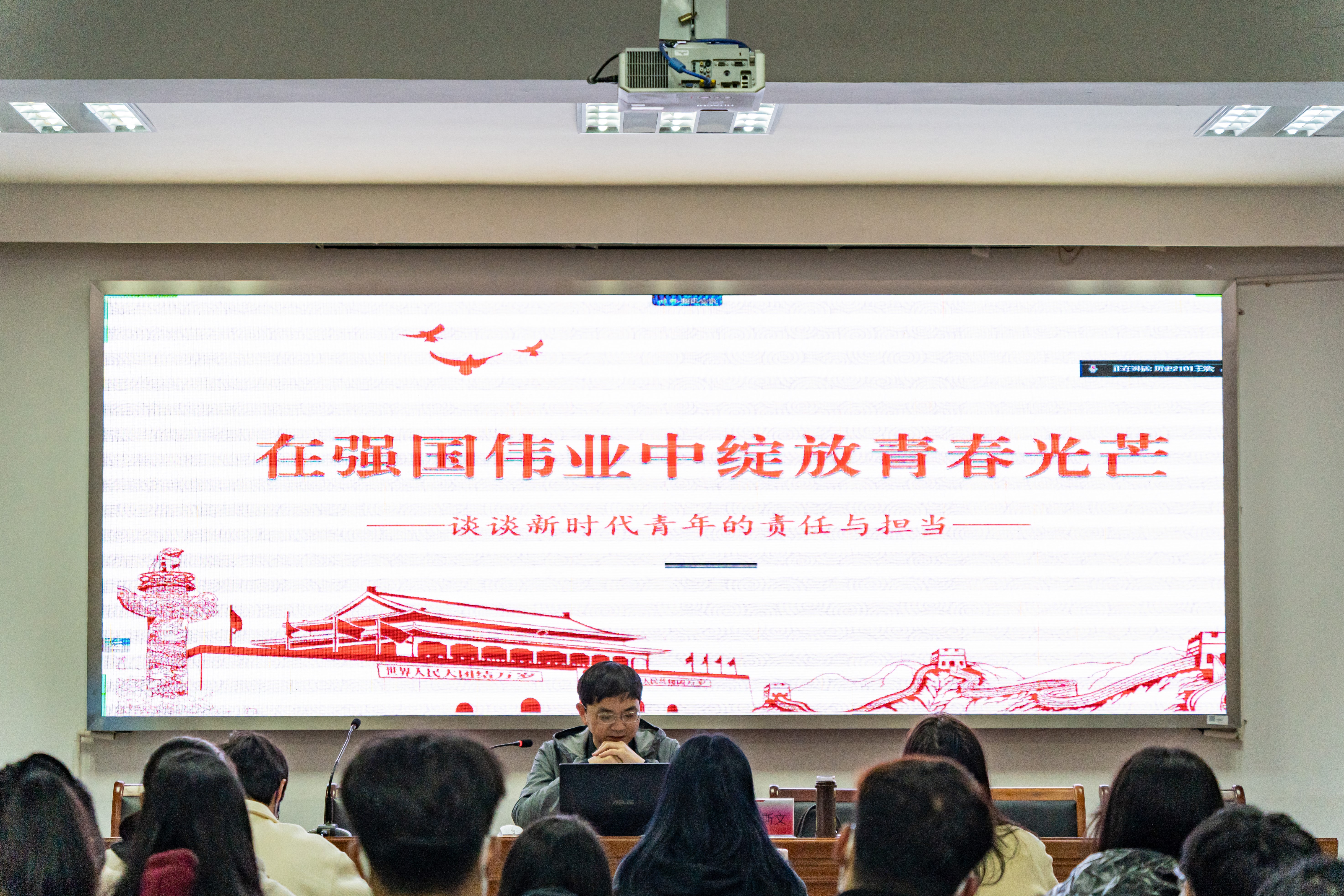 刘斯文老师将青年的时代责任分三个部分阐释,引领着同学们与时代同频共振,跳出个人的局限,走向时代的舞台、参与历史进程,对自己的人生、对国之未来负责。当代中国青年生逢其时,施展才干的舞台无比广阔,实现梦想的前景无比光明。青年一代面对这样的历史机遇,更要牢牢把握,扛好责任,付诸实践。
