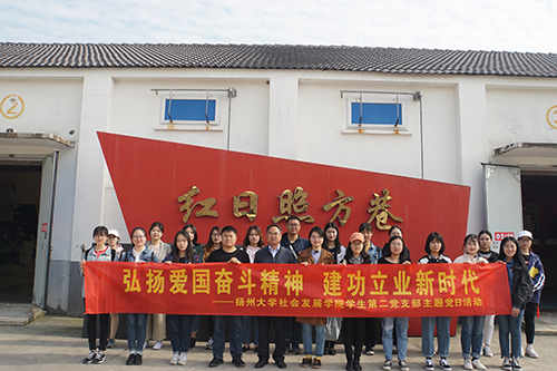为纪念五四运动100周年,引领党员建功新时代,社会发展学院学生第二党支部于5月8日下午组织党员赴邗江区方巷镇开展“弘扬爱国奋斗精神 建功立业新时代”主题党日活动。