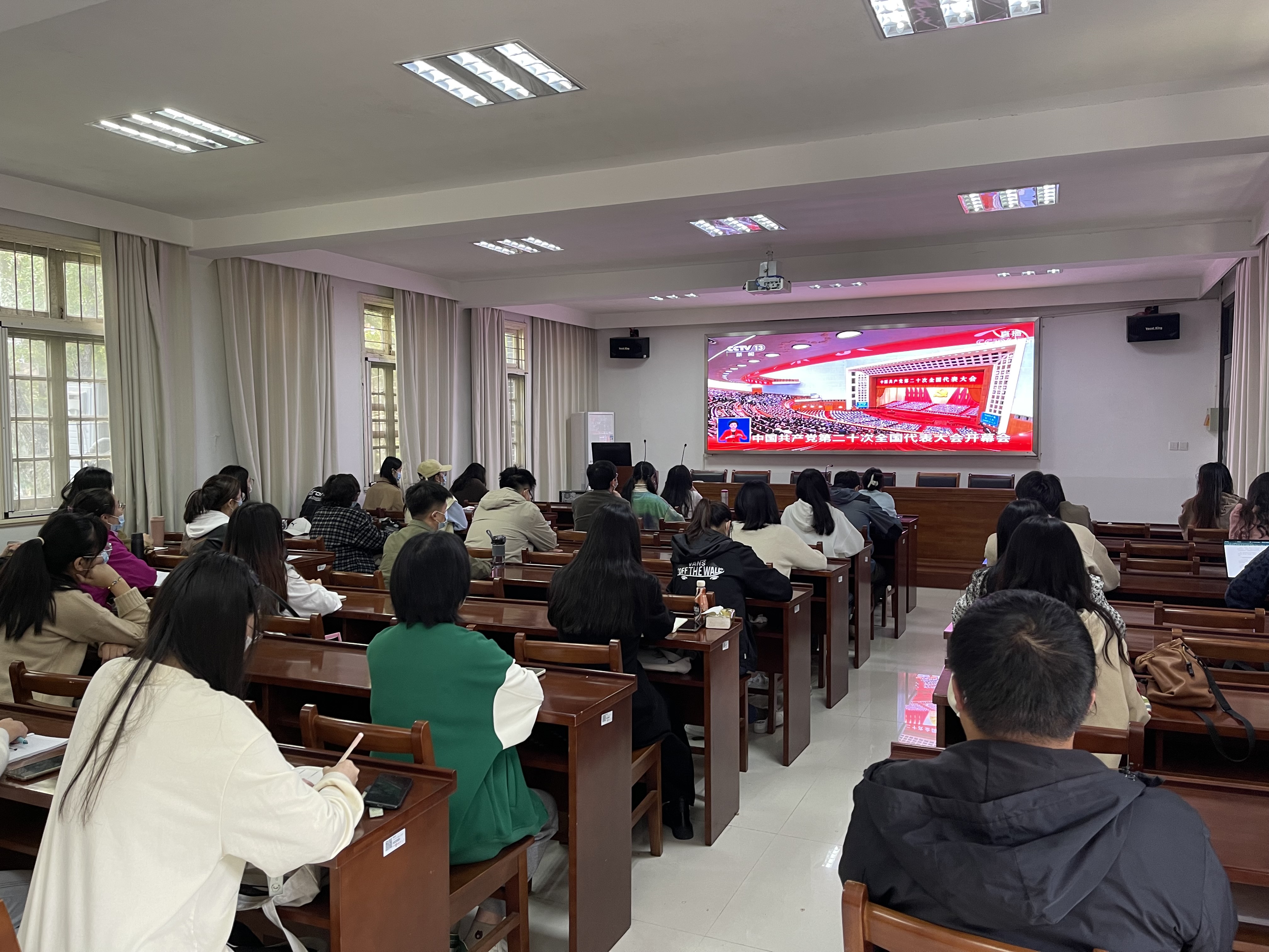 10月16日上午,中国共产党第二十次全国代表大会在北京人民大会堂开幕,习近平代表第十九届中央委员会向大会作报告。学院党委理论学习中心组成员、全体党员和积极分子、师生员工满怀激动、情绪高昂,通过网络、广播、电视收听收看大会盛况,聆听大会报告。