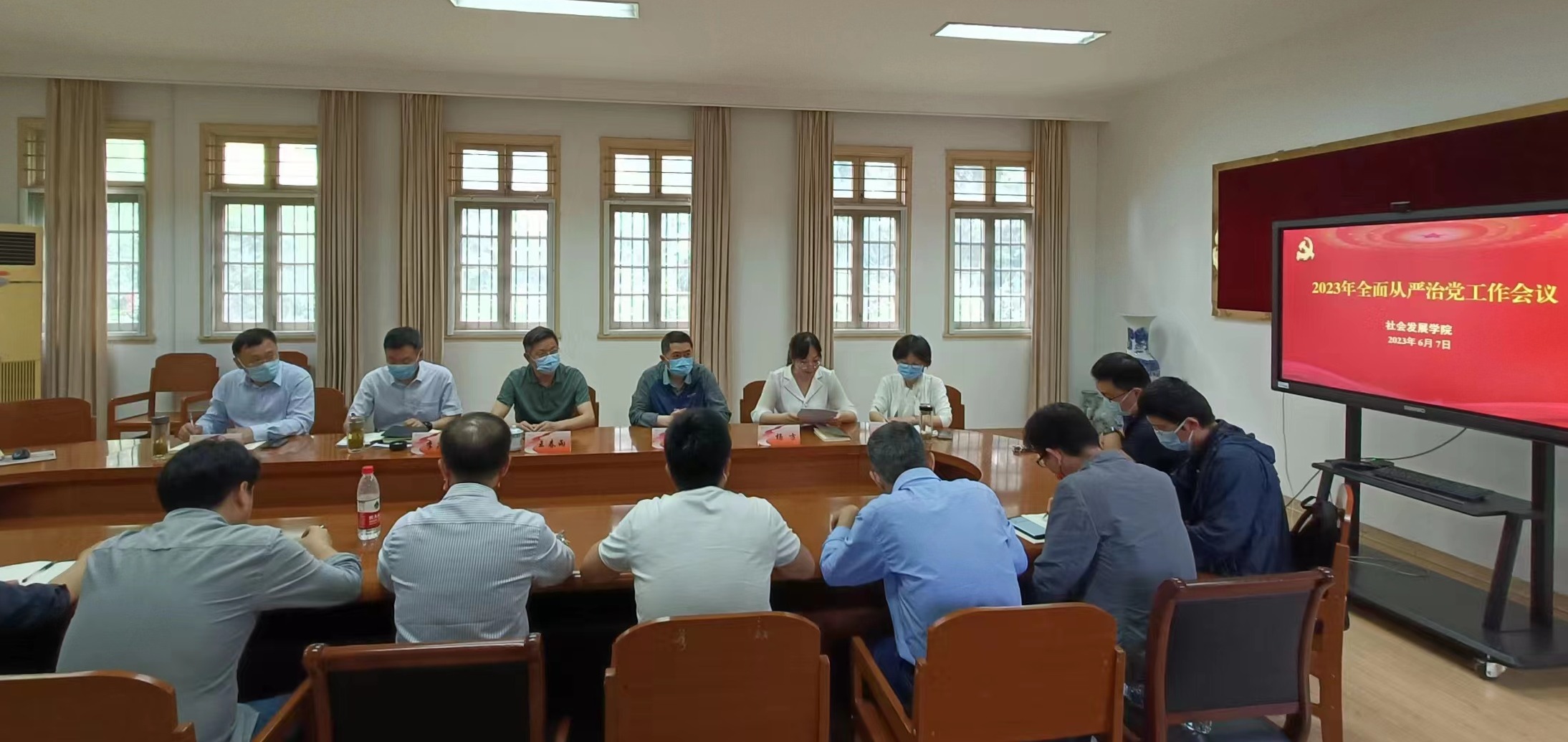 6月7日下午,学院在二楼会议室召开2023年全面从严治党工作会议,全体院领导、科级干部、各支部书记、各专业主任、教研室主任、实验室负责人参加会议。院党委副书记杨方主持会议,校纪委委员、物理科学与技术学院党委书记王春雨到会指导。