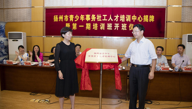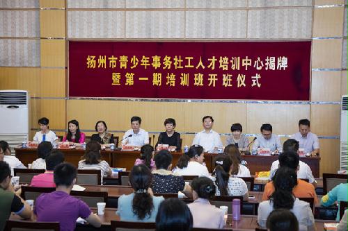 青少年事务是社会工作的重要实务领域,青少年事务管理的社会化、专业化发展是共青团工作转型的方向,也是更好地满足广大青少年多元需求的客观要求。近年来,扬州市青少年事务社会工作初步形成了“培育一批专业社工组织、凝聚一批骨干社工人才、运行一批青少年事务社会服务项目”的基本框架。为更好地贯彻落实中央和省关于青少年事务社工专业人才队伍建设的有关文件精神,充分发挥扬州市民政局政策、资源优势,团市委组织网络优势和扬州大学社会发展学院人才、教育、科研优势,扬州市民政局、团市委和我院共同发起成立“扬州市青少年事务社工人才培训中心”,将开展青少年事务社工专业人才培训,指导青少年事务社工作服务机构建设,推动青少年事务社工专业人才社会实践,成为扬州市青少年事务社工专业人才培养搭建综合性教育培训平台。