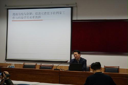 为深入推进档案重点专业建设,5月9日,我院邀请山东大学历史文化学院党委书记赵爱国教授做了“漫谈传统与创新:信息化背景下的档案工作与档案学的双重选择”专题学术报告,学院档案专业全体老师、学校档案馆有关工作人员及档案1301班的本科生参加了报告会。