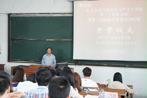 瘦西湖校区离退休党支部的韩寿祥老师、冯朝进老师、孔宪芳老师,以及院党委副书记茅卫东老师、院团委老师及全体营员参加了开营仪式。据悉,参加本次训练营活动的营员包括全体大一、大二年级的班级两委会成员,以及院学生会、学生社团联合会、大学生通讯社副秘书长、副部长或副部长及以上的学生干部的98名同学。他们将在接下来的两周中开展理论学习、素质拓展、无领导小组讨论、志愿服务等活动。