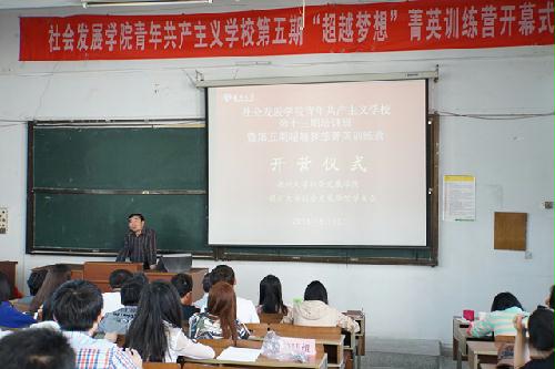辅导员印月老师在主持开幕式之前,放映了一段学生会网信部制作的视频,让训练营学员了解“超越梦想”菁英训练营开办的初衷,即培养出一批“有理想,有知识,有活力,有才干”的学生骨干,提高自己的综合能力,使得向梦想迈进的脚步越来越坚定。离退休党支部韩寿祥老师表达了自己对同学们的期望,他在讲堂上与学员们分享了自己学生干部时期所积累的经验。他认为,学生干部不仅是一种荣誉,更是一种责任。他衷心希望所有的学生干部都能做充满热情、有担当、有集体荣誉感的有心人。
