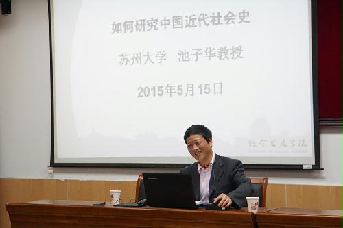 5月15日,我院邀请苏州大学博士生导师池子华教授做了《如何研究中国近代社会史》专题学术报告。我院青年教师、中国史专业在读博士和硕士研究生参加了学术报告。