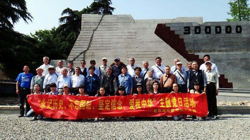 为纪念世界反法西斯战争胜利70周年、中国抗日战争胜利70周年,5月20日,瘦西湖校区离退休第二党支部组织28名党员教师与我院周恩来班12名入党积极分子共同前往六朝古都——南京,开展纪念抗战胜利70周年活动——“永记历史、不忘国耻、坚定信念、爱我中华”主题党日活动,参观了侵华日军南京大屠杀遇难同胞纪念馆、中山陵、总统府等地。关工委冯书记引用习总书记“必须铭记历史,忘记历史就没有未来”的观点,引导大家重温历史,接受爱国主义教育,更好地培养爱国主义情怀,同时让大家对南京这座历史文化名城有了更深一层的了解。侵华日军南京大屠杀遇难同胞纪念馆内一幅幅凄惶的画面,一幕幕惨绝人寰的场景,无不引起党员和积极分子对死难同胞的深切哀悼!活动结束之际,杨玉泉主任对此次有主题、有内容、有意义的活动进行总结,更对对我院周恩来班的积极分子提出了殷切的期望。我院周恩来班的积极分子纷纷表示:“作为当代大学生,更应该铭记历史,珍爱和平。应该更加明确青年人肩负的时代责任,发扬周恩来精神,为实现民族复兴担当重任!”(祁强)