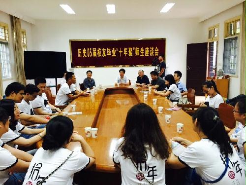 暑假期间,我院历史专业2005届校友毕业十周年返校,举办纪念活动,副院长刘建臻教授出席了师生座谈会,并为校友们颁发了“扬州大学校友徽章”。