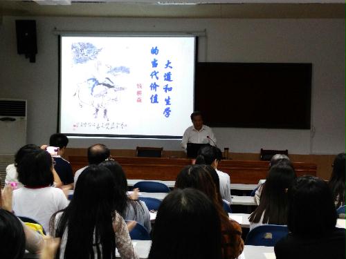为推进哲学专业的研究性教学改革,提高本科生和研究生的培养质量,9月17日,我院邀请安徽大学哲学系钱耕森教授做了《大道和生学的当代价值》专题学术报告。我院中青年教师、哲学专业本科生和研究生以及中国史专业的研究生参加了此次学术报告,刘建臻副院长主持报告会。