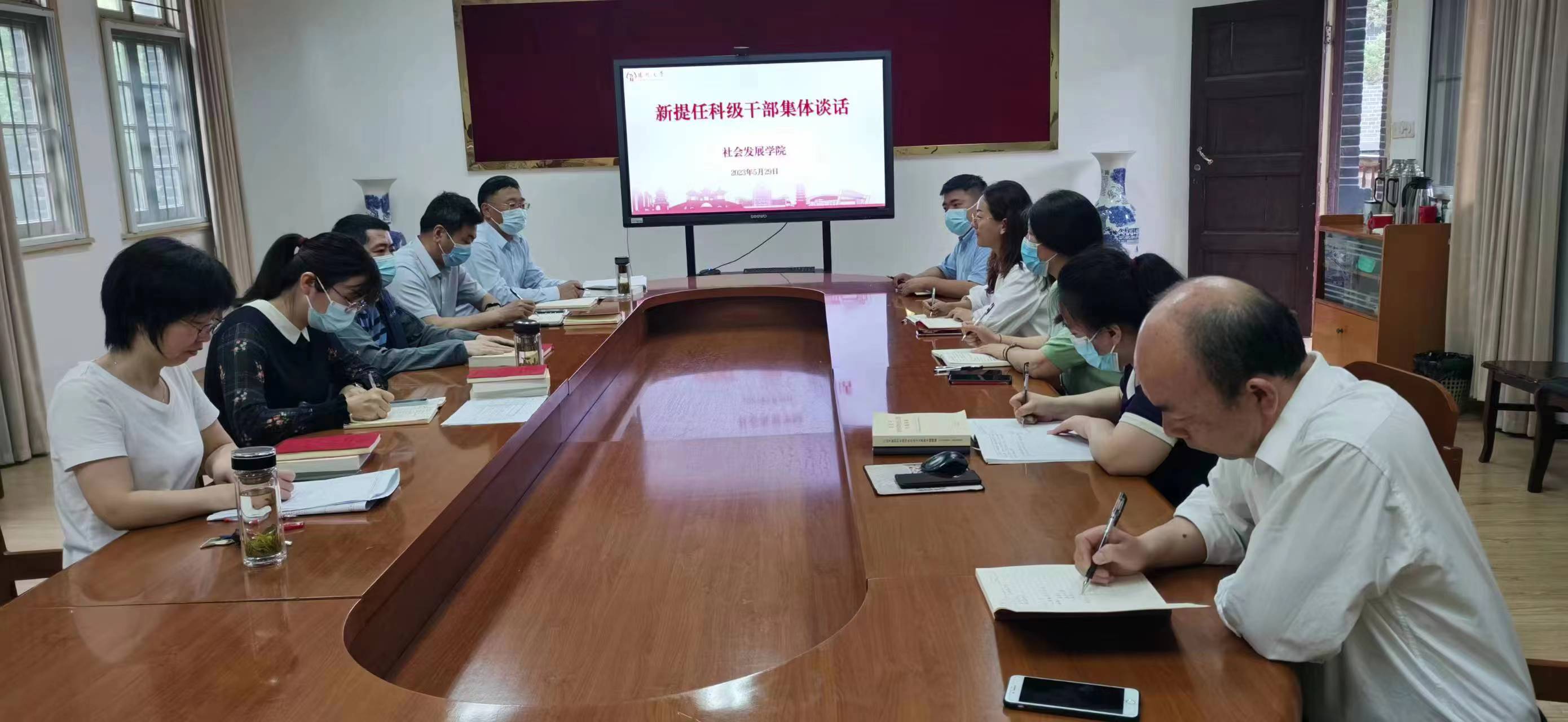 5月29日,学院在二楼会议室召开新提任科级干部集体谈话会。全体院领导出席会议并作集体廉政谈话,5名科级干部表态发言。