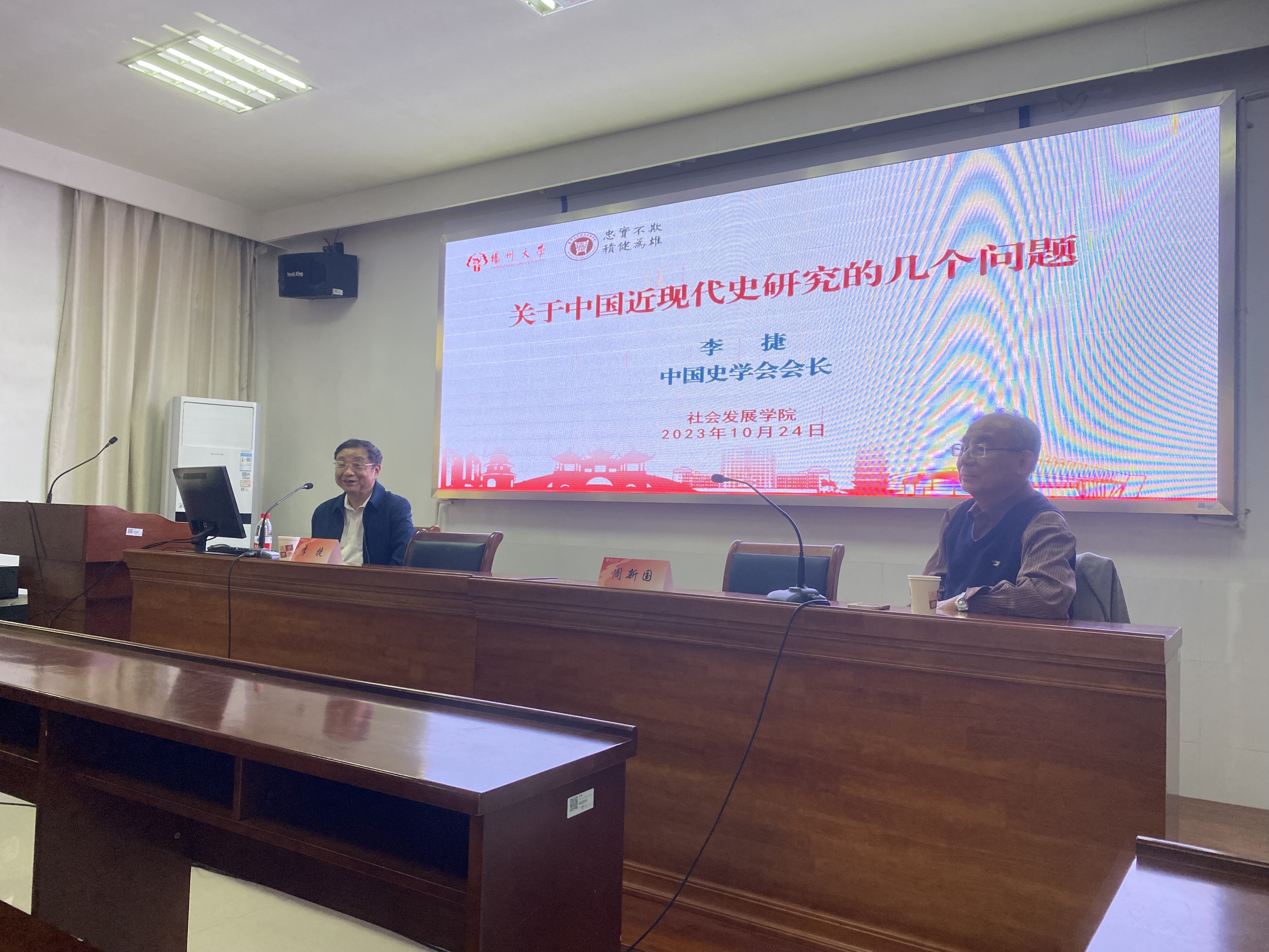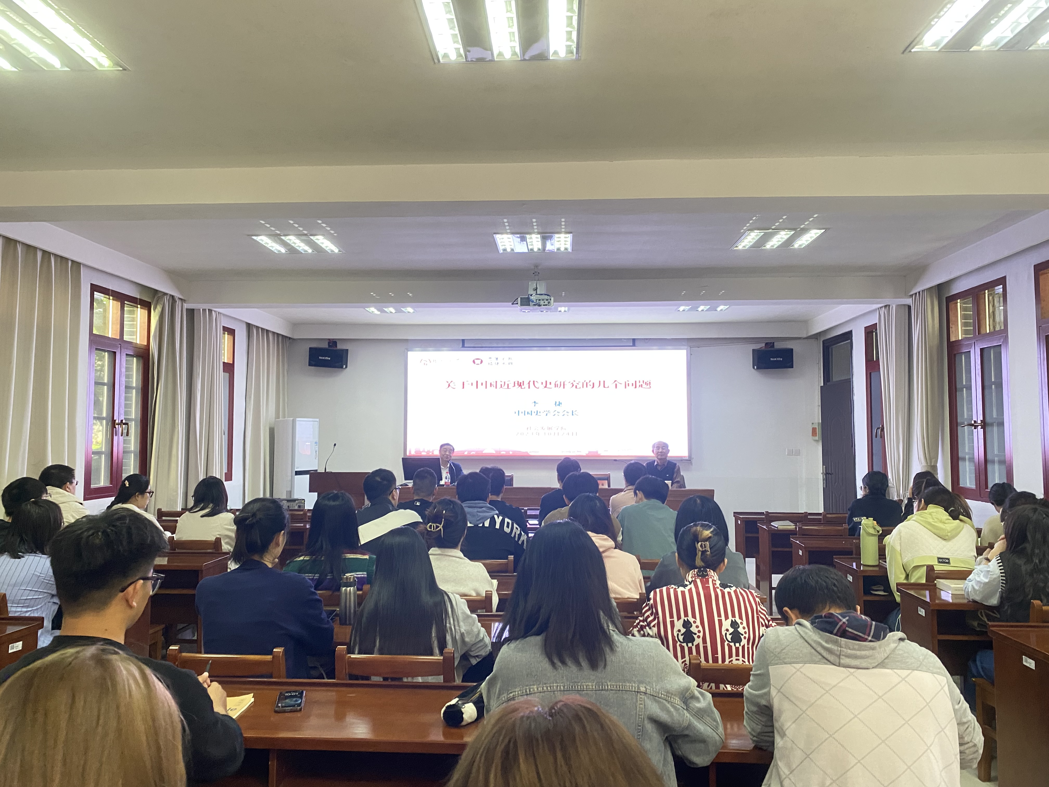 10月24日上午,中国史学会会长、清华大学马克思主义学院特聘教授李捷应邀到我院“素心讲堂”作了题为“关于中国近现代史研究的几个问题”的学术报告。报告由周新国教授主持,中国史研究生、本科生80余人参加了此次学术活动。