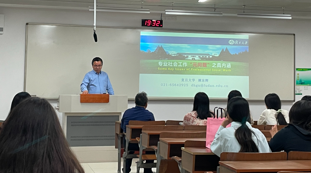 5月31日,复旦大学社会发展与公共政策学院顾东辉教授应邀为我院师生作题为《专业社会工作“元问题”之真内涵》的学术讲座。讲座由刘正峰教授主持,社会工作专业老师、研究生、本科生50余人参加了本次活动。