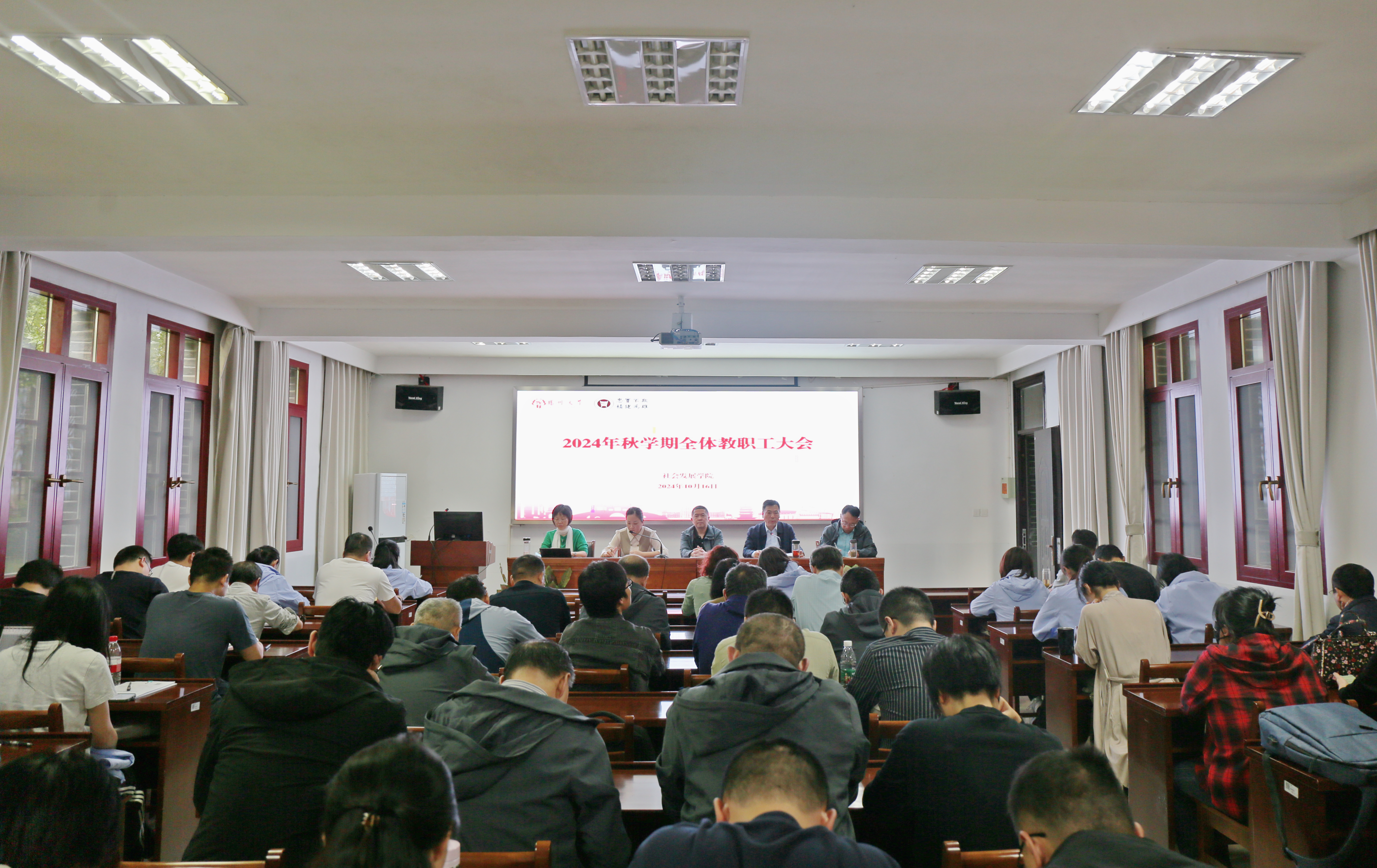 10月16日下午,我院在108报告厅召开2024年秋学期教职工大会,全体院领导及教职工参加会议,院党委副书记杨方主持会议。