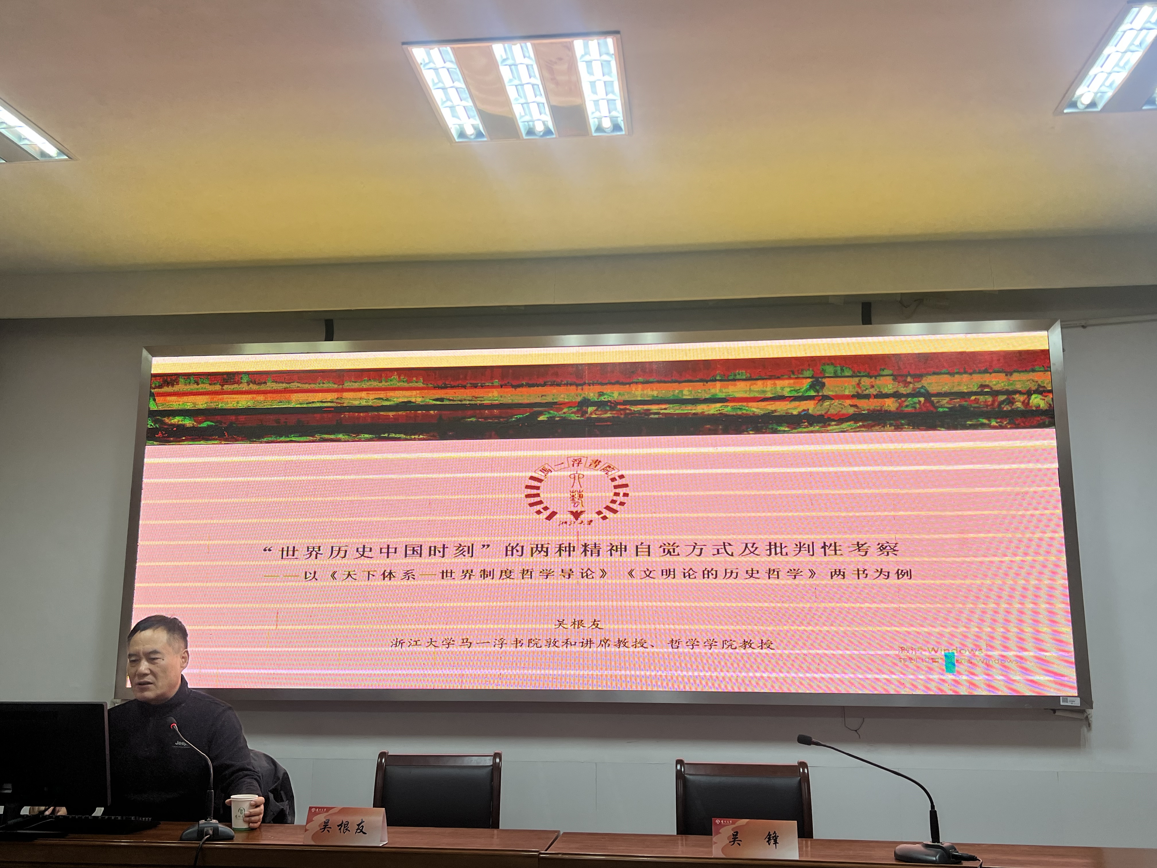 11月14日,浙江大学马一浮书院讲席教授暨哲学学院吴根友教授应邀莅临我院,为师生作题为《“世界历史中国时刻”的两种精神自觉方式及批判性考察》的学术报告。报告由吴锋教授主持,学院哲学系师生80余人参加了本次活动。