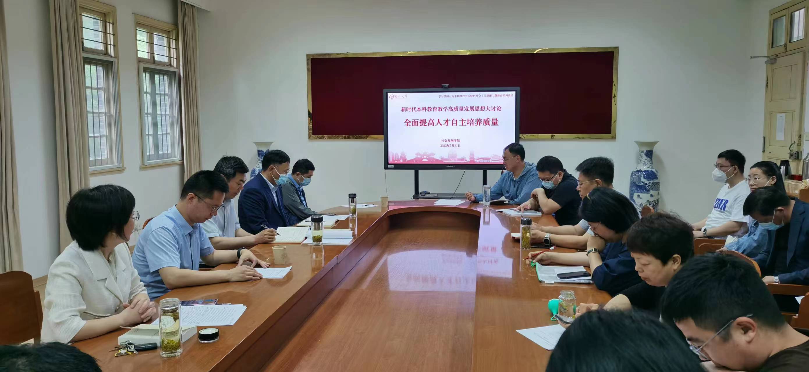 为深入学习贯彻习近平新时代中国特色社会主义思想主题教育,贯彻落实习近平总书记关于教育的重要论述精神,切实提高人才自主培养质量,5月31日上午,我院在学院二楼212会议室开展“新时代本科教育教学高质量发展思想大讨论·全面提高人才培养质量”活动。本次研讨会特别邀请教务处副处长张来做主旨报告。全体院领导、系主任、校院督导、实验室主任、四史教学团队成员、一流课程申报团队成员、新入职教师等参加,研讨会由副院长程海霞主持。