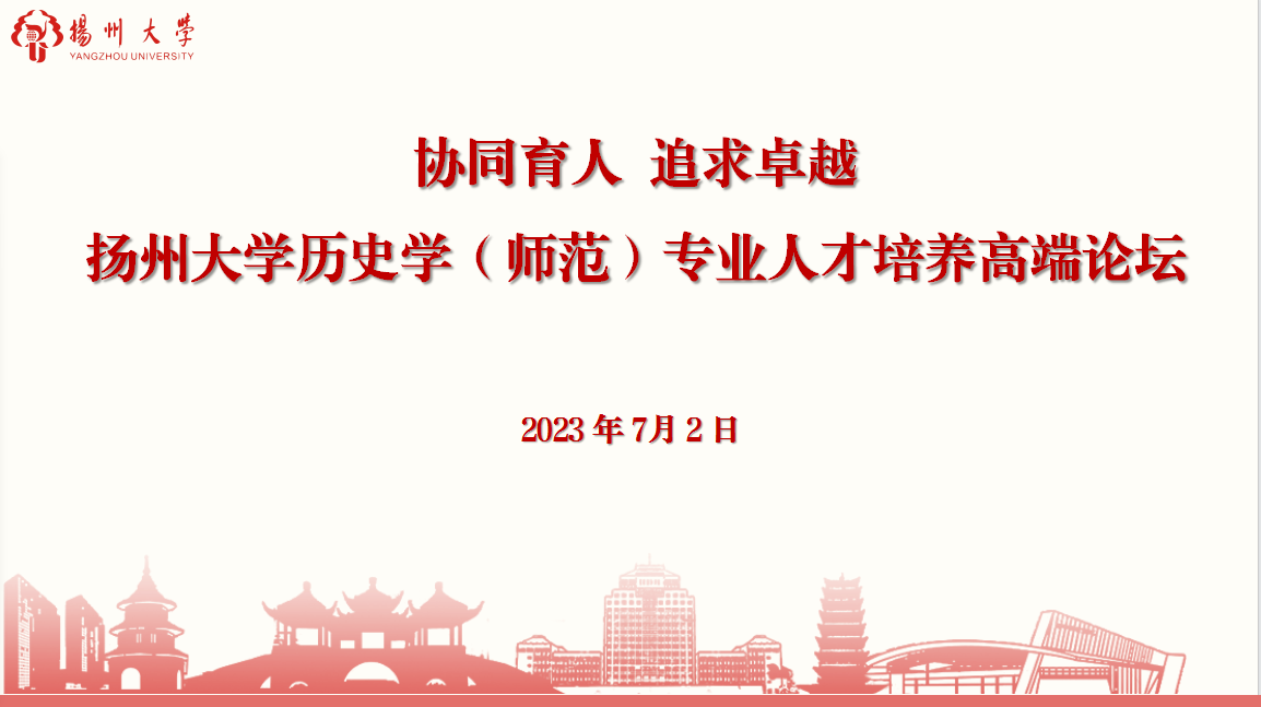 日前,由我院主办的“‘协同育人,追求卓越’——扬州大学历史学(师范)专业人才培养高端论坛”在扬州举行。校教育教学评估中心主任郑刚出席开幕式并致辞。我院院长李庆钧主持开幕式。