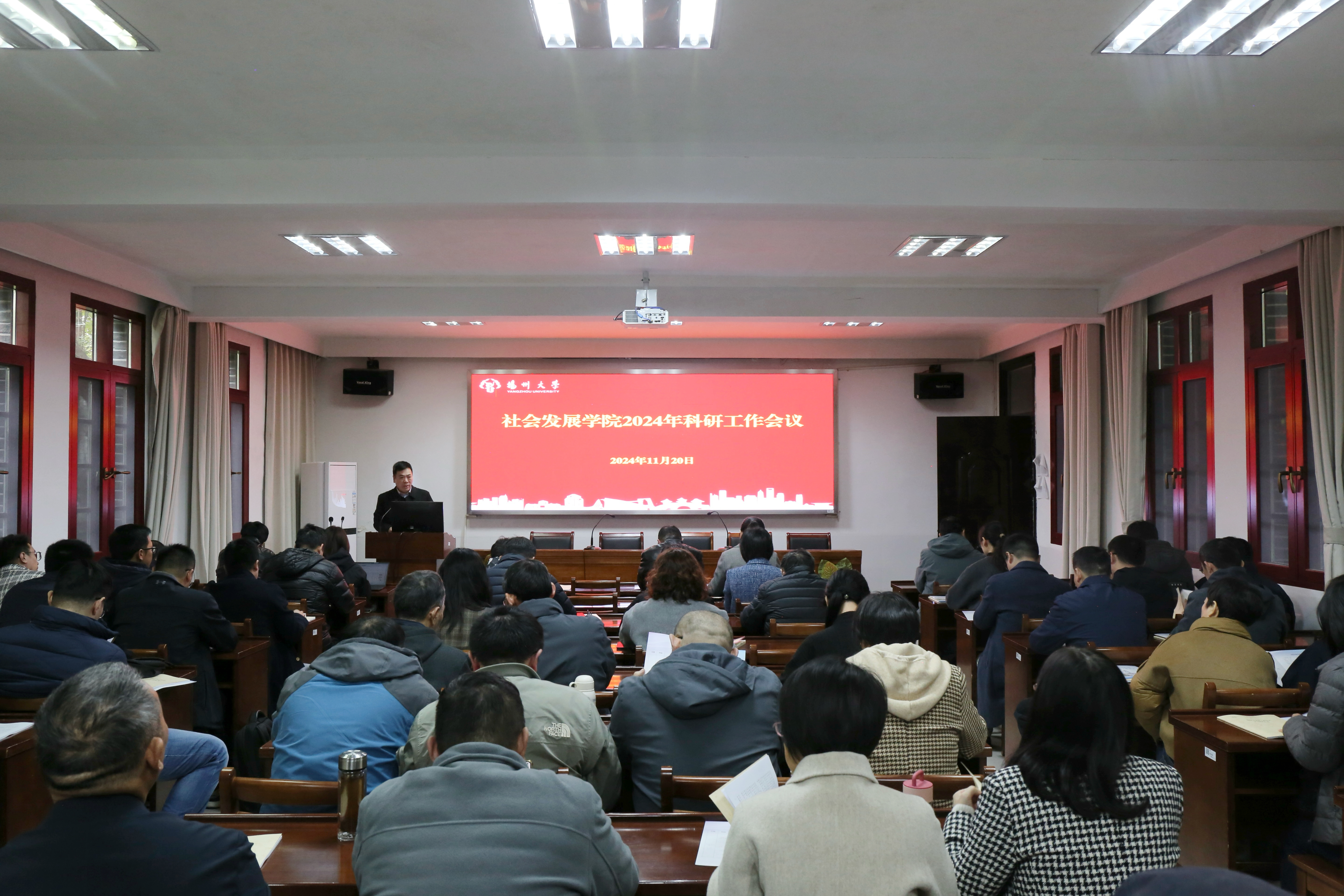 11月20日下午,学院在108报告厅召开2024年度科研工作会议暨2025年国家社科基金项目申报动员会,全体院领导和专任教师近80人参加会议。