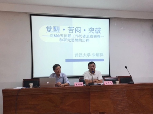 9月17日,武汉大学朱炳祥教授应邀到我院“素心讲堂”之名家讲堂,为学院师生作了一场题为《觉醒·苦闷·突破——对800天田野工作的反思及获得一种研究思想的历程》的学术报告,报告由副院长陆和健主持。